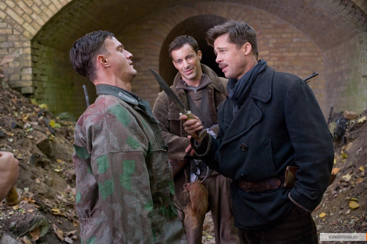 Lt. Aldo Raine: My name is Lt. Aldo Raine and I’m putting together a special team, and I need me eight soldiers. Eight Jewish-American soldiers. Now, y’all might’ve heard rumors about the armada happening soon. Well, we’ll be leaving a little earlier. We’re gonna be dropped into France, dressed as civilians. And once we’re in enemy territory, as a bushwhackin’ guerrilla army, we’re gonna be doin’ one thing and one thing only… killin’ Nazis. Now, I don’t know about y’all, but I sure as hell didn’t come down from the goddamn Smoky Mountains, cross five thousand miles of water, fight my way through half of Sicily and jump out of a fuckin’ air-o-plane to teach the Nazis lessons in humanity. Nazi ain’t got no humanity. They’re the foot soldiers of a Jew-hatin’, mass murderin’ maniac and they need to be dee-stroyed. That’s why any and every every son of a bitch we find wearin’ a Nazi uniform, they’re gonna die. Now, I’m the direct descendant of the mountain man Jim Bridger. That means I got a little Injun in me. And our battle plan will be that of an Apache resistance. We will be cruel to the Germans, and through our cruelty they will know who we are. And they will find the evidence of our cruelty in the disemboweled, dismembered, and disfigured bodies of their brothers we leave behind us. And the German won’t not be able to help themselves but to imagine the cruelty their brothers endured at our hands, and our boot heels, and the edge of our knives. And the German will be sickened by us, and the German will talk about us, and the German will fear us. And when the German closes their eyes at night and they’re tortured by their subconscious for the evil they have done, it will be with thoughts of us they are tortured with. Sound good?