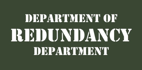 Redundancy By aaforringer on December 9, 2014 • ( 2 ) I’m for abolishing and doing away with redundancy. J. Curtis McKay, Wisconsin State Elections Board Share this: Click to share on X (Opens in new window) X Click to print (Opens in new window) Print More Click to share on Facebook (Opens in new window) Facebook Click to email a link to a friend (Opens in new window) Email Like Loading...‹ Scrooged – SpeechTenacity ›Categories: QuotesTags: abolishing, Department, Dept., Redundancy