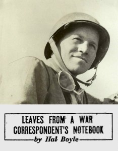 Harold Vincent “Hal” Boyle (July 24, 1911 – April 1, 1974) was a prolific, Pulitzer-prize-winning journalist for the Associated Press. During 30 years with the AP Boyle wrote 7,680 columns. He is best known for his work as a war correspondent during World War II. He was consistently closer to the front lines in the European and Pacific theaters of operation than other correspondents. His column became a staple in over 700 newspapers. He is also the namesake of a prize given annually to reporters by the Oversees Press Club of America, for the best newspaper or wire service reporting from abroad.