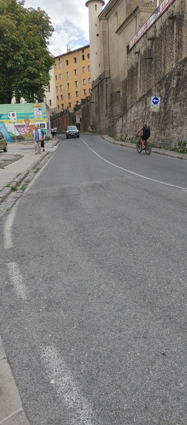 The next morning, we started off hiking, and like most time on the Camino you can stop and have a coffee along the way. That is when Ken realized he no longer had his wallet. After tearing apart his backpack on the sidewalk opening every pouch, pocket, and package there was no wallet to be found. We stopped hiking for the day and retraced our steps from the previous day and returned to the Ken’s hotel in order to begin the process of cancelling credit cards and such. But the good people of Spain returned Ken’s wallet with the three hundred Euros and we were able to restart the Camino the next morning. So, we were able to do some more sightseeing in the old part of Pamplona, including walking the path of the running of the bulls and the old city walls the afforded the city protection from 74 B.C. onwards and even up to the 1930s’ Spanish Civil War.
